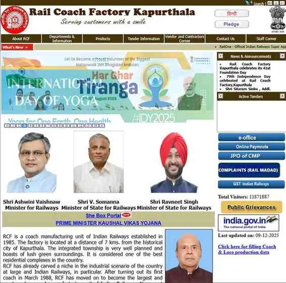 आधिकारिक वेबसाइट https://rcf.indianrailways.gov.in/